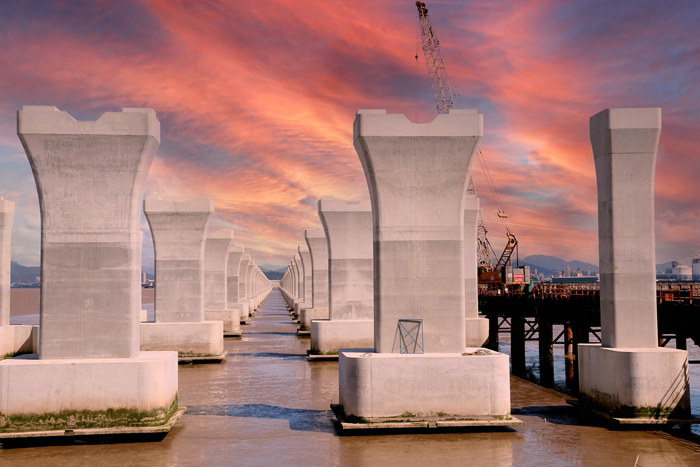 杭甬復(fù)線濱?;ネㄖ骶€橋全長2.4公里,設(shè)計(jì)樁基384個(gè) 、承臺(tái)96座 、墩柱96座。墩身上部為花瓶狀,寬4.8米、最高墩25.5米,是濱?;ネǖ闹匾M成部分。根據(jù)主線橋墩海底埋設(shè)寧波——舟山通訊電纜等多條管線、安全風(fēng)險(xiǎn)大、隨時(shí)可能發(fā)生重大事故的實(shí)際,項(xiàng)目部請鎮(zhèn)海區(qū)海事處協(xié)助解決管線定位難題。海事處派出經(jīng)驗(yàn)豐富的“蛙人”潛水摸排,確定了每根管線的準(zhǔn)確位置,并進(jìn)行標(biāo)記,掃除了海底“定時(shí)炸彈”。