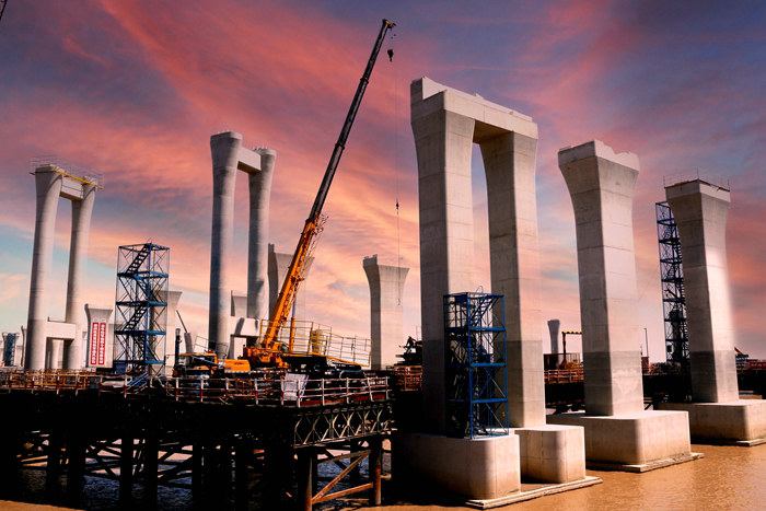 為加快主線橋、拼寬橋、匝道橋施工進(jìn)度,該項(xiàng)目部組織多家棧橋隊(duì)架設(shè)9米寬的鋼棧橋,2020年12月4日成功下穿金堂大橋,為下構(gòu)施工提供了便利條件。