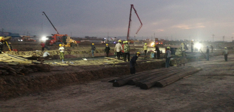 為確保施工進度,他們按照優(yōu)先接入、優(yōu)先放行、優(yōu)先編掛、優(yōu)先對位“四優(yōu)先”原則,優(yōu)化施工調(diào)度、勘察設(shè)計、施工排布、對接上級及兄弟單位等各作業(yè)環(huán)節(jié)緊密銜接,最大限度壓縮設(shè)備和人員非作業(yè)停留時間,加快人員和設(shè)備周轉(zhuǎn),全力保障建筑材料運輸供應(yīng)。另外,他們還根據(jù)現(xiàn)場情況不斷細化施工方案,設(shè)計、施工、優(yōu)化三管齊下,調(diào)動管理人員16人,工人114人,灑水車1臺,挖掘機3臺,裝載機1臺,渣土車3輛,平地機1臺,壓路機1臺,發(fā)電機3臺,鋼筋彎曲機1臺,鋼筋切斷機一臺有序推進工程建設(shè)。他們采取管理人員兩班倒、勞務(wù)工人三班倒、24小時不間斷作業(yè)等方式,鉚足勁晝夜奮戰(zhàn)在施工一線,爭分奪秒、搶抓進度,有力保障了疫情防控臨時防疫設(shè)施點的建設(shè)進度。截止目前,方倉集成房已進場60間,彩板房32間;鋼筋進場138.69t,混凝土進場221m³,現(xiàn)辦公桌椅,宿舍被褥、防疫物資等相關(guān)物品已到位,管理人員已具備辦公條件和住宿條件,現(xiàn)場鋼筋加工廠正在加工制作,基礎(chǔ)槽已具備綁鋼筋條件,已形成流水作業(yè)。混凝土已入場,1號艙混凝土已澆筑完成。