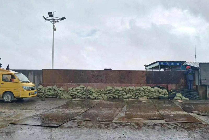 為加強(qiáng)臺(tái)風(fēng)“軒嵐諾”登陸寧波海域期間的安全管理,杭甬項(xiàng)目主要領(lǐng)導(dǎo)前往濱?;ネüさ夭榭纯古_(tái)防御情況,發(fā)現(xiàn)海上漫上棧橋,在車輛、員工出入濱?;ネüさ氐?號(hào)棧橋口,由工字鋼架、鋼板、沙袋構(gòu)成的擋水墻高度,難以抵御大浪的侵襲,有突破防線的可能,當(dāng)務(wù)之急是加高擋水墻。該項(xiàng)目部迅速組織搶險(xiǎn)車輛,將鋼板、工字鋼和沙袋運(yùn)至出入口,由多名電焊工進(jìn)行緊張有序的切割、焊接加工。經(jīng)過兩個(gè)多小時(shí)的緊張施工,工字鋼架和鋼板的高度由原1.2米增加至2.5米。同時(shí)在鋼板外側(cè)堆碼200多個(gè)沙袋,防止海水從底部涌出,也增加了鋼結(jié)構(gòu)擋水墻的安全系數(shù)。