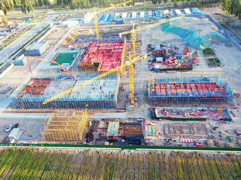 中鐵二十一局承建兵團南疆救治基地建設(shè)項目為??苽魅静♂t(yī)療用房,急床位數(shù)129張(含ICU13床),內(nèi)部功能包括門診、醫(yī)技檢查、手術(shù)、病房、后勤保障等,共有單體建筑10棟。項目總建筑面積17775.58平方米,地上建筑面積16025.32平方米,地下1750.26平方米。該工程2022年6月30日開工,計劃2023年5月31日完工,工期緊、任務(wù)重、房建施工工序多,為更好更快地兌現(xiàn)工期要求,項目部多措并舉推進施工。為確保施工進度,項目明確目標、分解任務(wù)、落實責任,將任務(wù)目標分解到每周、每日,開展勞動競賽,掀起施工大干高潮;為確保施工有序,項目部細化工序,從基坑開挖、獨立基礎(chǔ)、首層梁、二層梁板柱、頂層梁板柱等,做到銜接有序、快速施工;在疫情防控常態(tài)化形勢下,為確保物資順利進場,項目部及時跟蹤車輛人員信息,提前聯(lián)系社區(qū)、卡點,確保車輛順利通過,并通過與社區(qū)協(xié)調(diào)溝通,在施工現(xiàn)場開展每日核酸檢測采樣工作,既節(jié)約時間,又保障參建人員身體健康。
