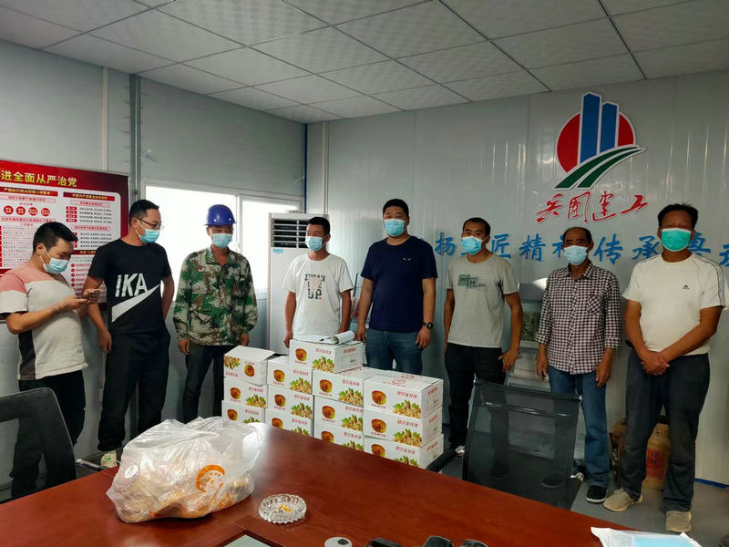該項(xiàng)目位于昆玉市周邊,地處沙漠腹地,風(fēng)沙大,條件苦,自開(kāi)工以來(lái),工人們斗風(fēng)沙、戰(zhàn)酷暑,冒嚴(yán)寒,長(zhǎng)期奮戰(zhàn)在施工一線,用勤勞的汗水換取了工程的質(zhì)量與進(jìn)度。中秋來(lái)臨,項(xiàng)目部“一班人”想工人所想,給工人所需,及時(shí)組織開(kāi)展慰問(wèn)活動(dòng),感謝工人們的辛勤付出。