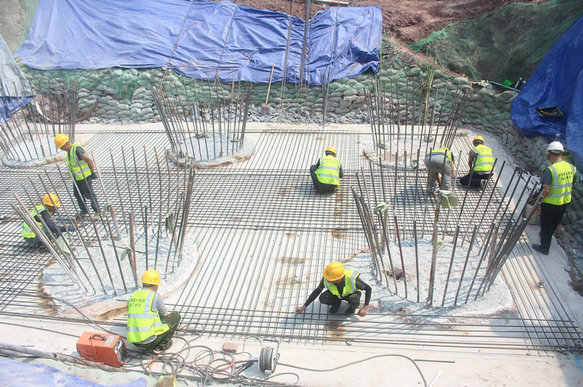 17標(biāo)工人在綁扎廖家溪軌道引橋承臺鋼筋