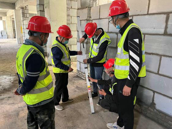 活動中,項目總工對砌體部分的施工和實測進行了詳細(xì)的講解,要求在施工過程中實施全程管理,對控制點進行預(yù)控和監(jiān)督,避免導(dǎo)致誤差累積,同時還對實習(xí)生進行了現(xiàn)場實際操作的演示,讓實習(xí)生親自實測,更好地融入到現(xiàn)場施工環(huán)境中。