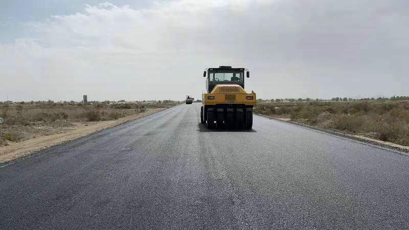 項目主線路面總長16.7km,現(xiàn)場施工人數(shù)共投入20余人,攤鋪機、壓路機、水車、自卸車等設備共投入33臺套。截至目前圖昆公路(三師段)一標項目已完成總工程量的90%,道路瀝青面層正在緊鑼密鼓地組織施工。