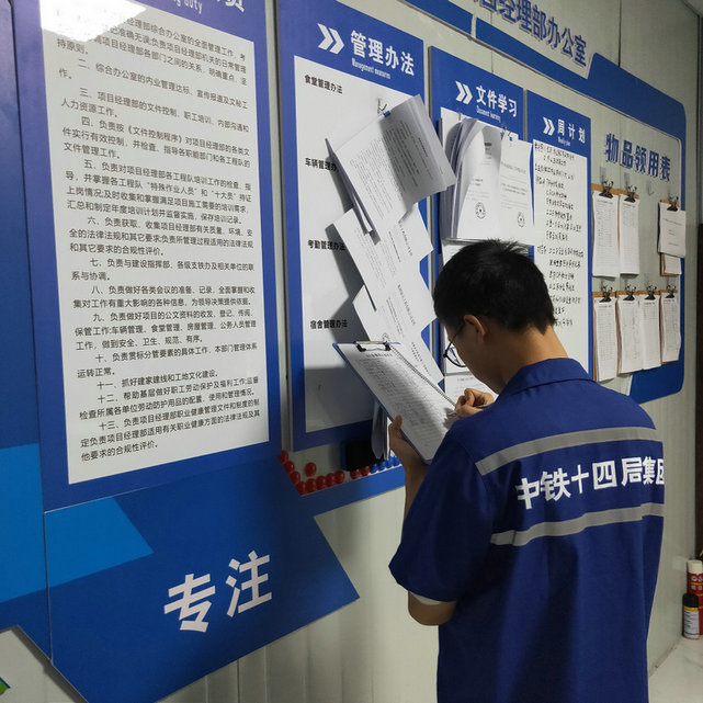 為進(jìn)一步規(guī)范項(xiàng)目部室人員履職行為,提升辦公人員整體素質(zhì)和工作效能,凝聚創(chuàng)新力量、激發(fā)服務(wù)熱情,延伸技術(shù)創(chuàng)新內(nèi)容,“曹元均技術(shù)創(chuàng)新工作室”在破解中梁山隧道圍巖不穩(wěn)、巖層積水等難題、推動(dòng)施工生產(chǎn)的同時(shí),積極與項(xiàng)目部書記研究融合企業(yè)文化內(nèi)容的技術(shù)創(chuàng)新課題,各部室按照各自性質(zhì)的特點(diǎn),設(shè)置了內(nèi)容豐富的“文化墻”。項(xiàng)目部書記何偉說(shuō):“項(xiàng)目部各部室富有各自特點(diǎn)、美觀大方、內(nèi)容充實(shí)的文化墻,既有各自工作的指導(dǎo)性、又有對(duì)其業(yè)務(wù)的警示性,每次辦公出入,耳濡目染,營(yíng)造出干事創(chuàng)業(yè)的濃厚氛圍,工作的動(dòng)力在無(wú)形中得到很好的提升。”