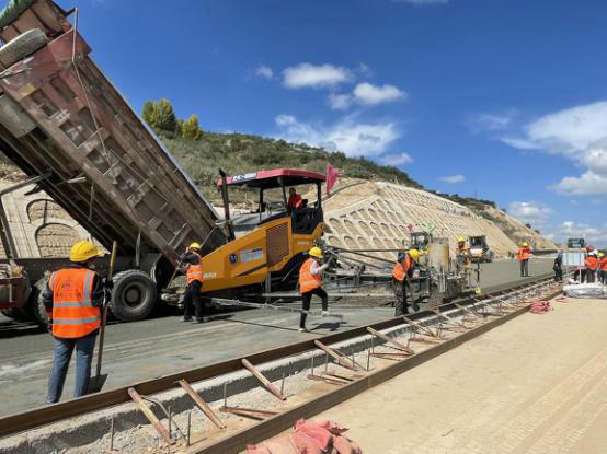 本次試驗段位于K200+005-K200+305主線右幅,全長 300米,攤鋪寬度為 12.1m,厚度為18cm。為確保試驗段順利鋪設(shè)并取得預(yù)期效果,項目部多次召開施工專題工作會議,從技術(shù)質(zhì)量、安全生產(chǎn)等方面入手,確保水穩(wěn)混合料的拌合、運(yùn)輸、攤鋪、碾壓、試驗檢測、安全、環(huán)保等各個環(huán)節(jié)有條不紊進(jìn)行。在攤鋪過程中,項目經(jīng)理、總工,監(jiān)理單位主要負(fù)責(zé)人到現(xiàn)場進(jìn)行觀摩指導(dǎo),于當(dāng)天下午15點45分隨著最后一輛水穩(wěn)料車駛離現(xiàn)場,該試驗段攤鋪工作順利結(jié)束。