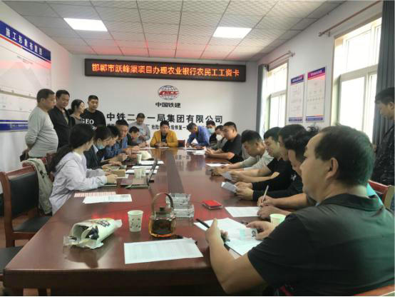 9月27日,中鐵二十一局四公司邯鄲市躍峰渠“2021.7”搶險(xiǎn)救災(zāi)水毀修復(fù)一期工程II標(biāo)項(xiàng)目部結(jié)合項(xiàng)目建設(shè)管理實(shí)際及規(guī)范化管理工作標(biāo)準(zhǔn),經(jīng)與銀行協(xié)商后,在項(xiàng)目部為農(nóng)民工集中辦理工資卡。