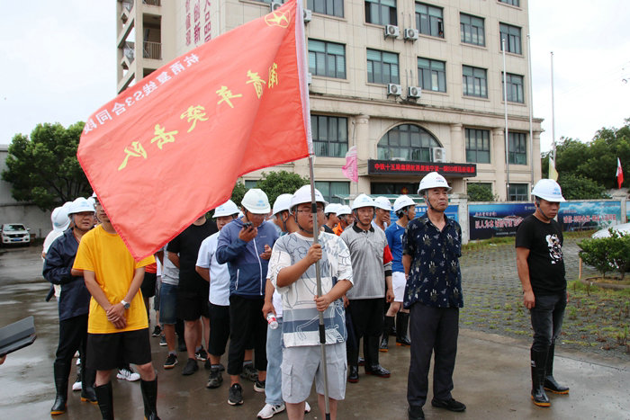 今年9月超強(qiáng)臺(tái)風(fēng)“軒蘭諾”“梅花”襲擊寧波前,項(xiàng)目部廣大黨員身先士卒,沖鋒陷陣,在工地進(jìn)出口筑起鋼鐵擋墻,加固工地設(shè)施,安全轉(zhuǎn)移400名員工。“梅花”離境后,在避災(zāi)所澥浦中學(xué)的103名員工在黨員的帶動(dòng)下,有序撤離,并將居住過(guò)的體育館場(chǎng)地打掃得干干凈凈,寧波日?qǐng)?bào)以《撤離后,他們留下整潔和文明》報(bào)道了撤場(chǎng)全過(guò)程,在寧波當(dāng)?shù)匾饛?qiáng)烈反響。