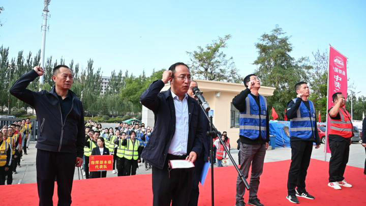 10月4日,中鐵二十一局臨夏工程公司舉辦2022年“喜迎二十大 建功新時代 忠誠保平安 奮戰(zhàn)四季度”宣誓大會,旨在幫助全體參建人員樹立牢固的安全意識,為黨的二十大勝利召開提供安全、穩(wěn)定、和諧的社會環(huán)境。