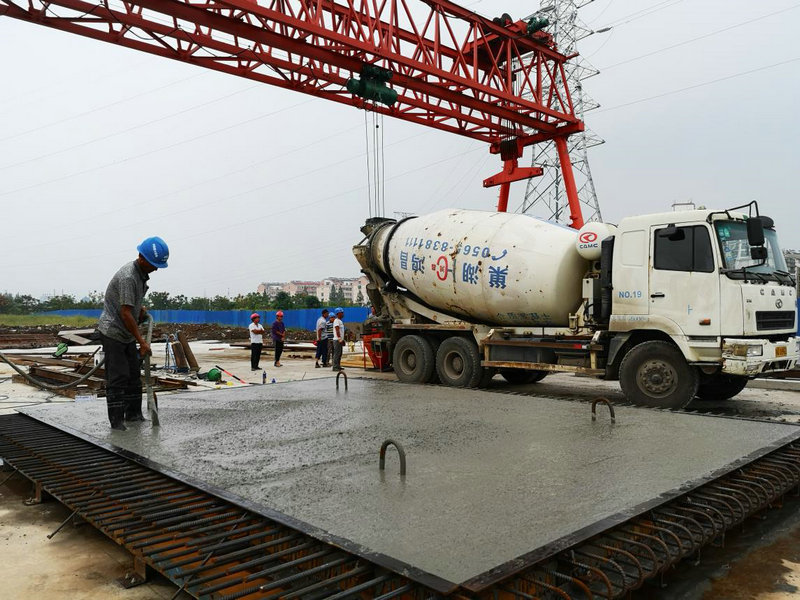 巢湖大橋全橋橋面板數(shù)量共計1258塊,共需混凝土方量為7982立方米,總重約21000余噸。首片橋面板,在澆筑前制定了詳細的技術(shù)方案,項目部安全、技術(shù)、質(zhì)量、物資等部門提前給施工班組作業(yè)人員進行培訓(xùn)交底會,混凝土澆筑全程盯控,保質(zhì)保量保進度完成澆筑工作。
