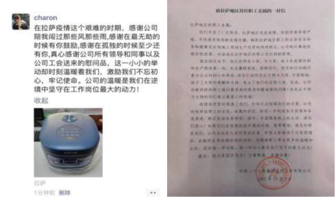 國(guó)慶期間,中鐵二十一局四公司拉薩地區(qū)被封控的職工依然駐守在疫情防控和施工生產(chǎn)第一線,舍小家、為大家,他們無法兼顧家庭,陪伴親人,用實(shí)際行動(dòng)踐行著對(duì)企業(yè)的初心和使命,而后方的家人始終顧全大局、默默堅(jiān)守,不斷地給予他們溫暖和關(guān)懷,大家齊心協(xié)力,共同為該公司筑起疫情防控的堅(jiān)固防線。