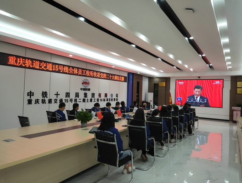 10月16日上午,中國鐵建重慶投資集團(tuán)軌道交通15號線二期總承包部及所屬各標(biāo)段項(xiàng)目部采取線上線下,集中分散相結(jié)合的方法,收看中國共產(chǎn)黨第二十次全國代表大會開幕式直播,認(rèn)真聆聽習(xí)近平總書記代表第十九屆中央委會作報告。會后,召開了座談會,話感悟,談體會。