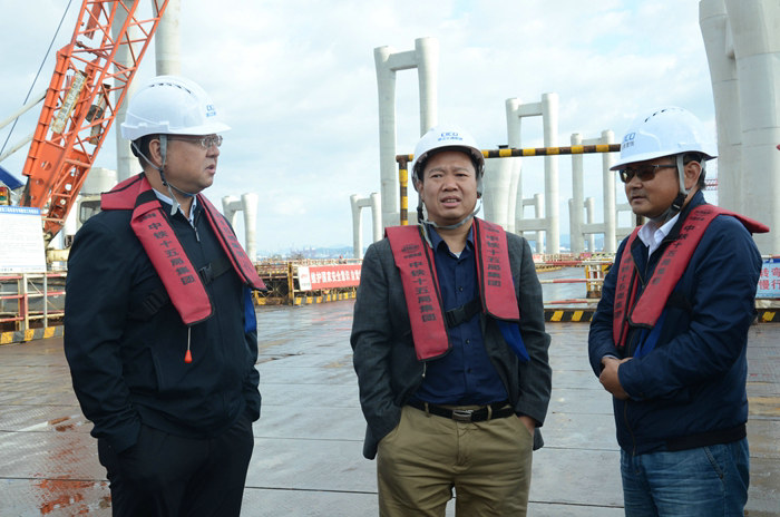 下午3點(diǎn),樊獻(xiàn)鵬驅(qū)車來到杭甬復(fù)線濱?;ネǎ瑥闹骶€橋到匝道橋墩身和系梁作業(yè);從G、D匝道橋架梁到建成的提梁站、卸梁站,一一進(jìn)行查看,提出一些問題,杭甬復(fù)線寧波一期高速公路有限公司東段指揮部指揮長甕奇波進(jìn)行了解答。寧波市高等級公路建設(shè)管理中心安全處處長張希匯報了生產(chǎn)鋼箱梁、運(yùn)梁、架梁等情況,項目部有關(guān)人員簡要地匯報了杭甬項目安全質(zhì)量、進(jìn)度環(huán)保、隊伍管理、物資設(shè)備管理、現(xiàn)場管理等整體情況。樊獻(xiàn)鵬對濱海互通施工進(jìn)展和各項管理給予充分肯定。他說:“十五局施工的濱海互通低調(diào)點(diǎn)說是亞洲最大的海上互通,實際上是世界上最大的濱?;ネ?,我來工地次數(shù)不少,每一次都有新變化,都有新感受,鱗次櫛比的橋墩,非常震撼,能把這座立交建成如今的樣子,十五局在管理方面是下了功夫的,海上建橋,要的是真刀真槍,尤其是工藝復(fù)雜的立交橋,沒有很強(qiáng)的實力是無法圓滿完成任務(wù)的。這座互通對十五局是一次管理、施工能力的綜合考驗。從目前看,不能說十全十美,但總體上從我掌握的情況,各級領(lǐng)導(dǎo)是滿意的,希望繼續(xù)努力,待畫上句號那一天,才敢說這是一份滿意答卷。