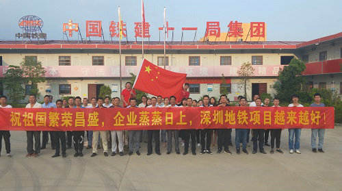 中鐵十一局深圳地鐵六號線項目紅旗飄揚為祖國慶生