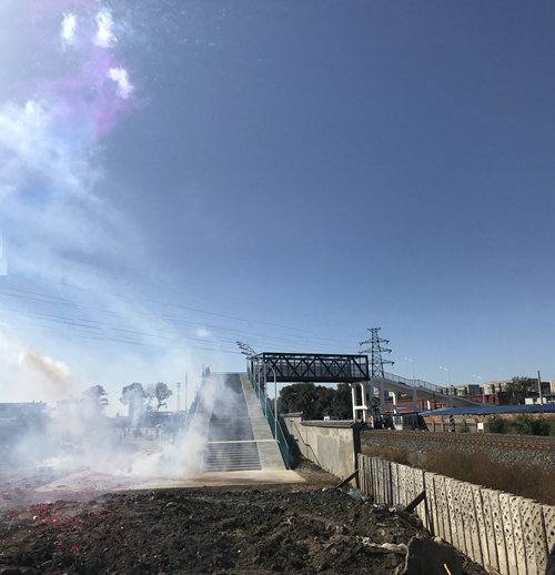 隨著震耳欲聾的鞭炮聲,中鐵二十三局二公司齊北線(xiàn)齊富增建二線(xiàn)工程項(xiàng)目經(jīng)理部承建的齊北線(xiàn)K1+289.7公里人行天橋正式開(kāi)通了,隨著這一座人行天橋的開(kāi)通,可進(jìn)一步緩解越過(guò)鐵路道口時(shí)的擁堵情況,改善道路通行條件。