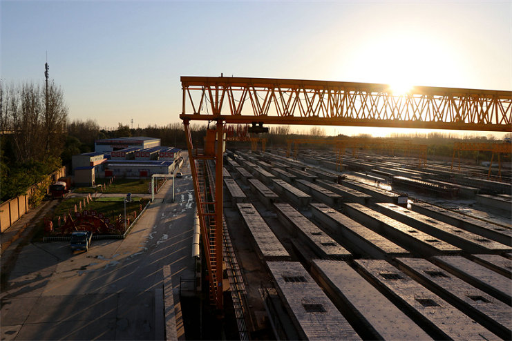 為加快箱梁預制進度,該項目制定科學的施工組織方案和資源調(diào)配計劃,實現(xiàn)施工組織最優(yōu)化、設備利用最大化,倒排工期,每周定目標、每日盯進度,并采取三班輪動、“白加黑”晝夜不間斷作業(yè),現(xiàn)場3個制梁區(qū)開足馬力,使梁板預制高峰產(chǎn)能達到13榀/日、295榀/月。