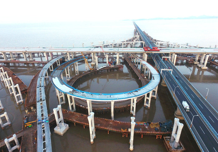 杭甬復(fù)線濱海高架橋最后一座“堡壘”,也是全線海上唯一一座連續(xù)梁,于2021年12月25日成功合攏之后,該項(xiàng)目濱?;ネㄖ骶€橋、拼寬橋、匝道橋成為2022年施工的主戰(zhàn)場,他們在兩次超強(qiáng)臺(tái)風(fēng)導(dǎo)致工期緊和新冠疫情防控形勢嚴(yán)峻的壓力下,截止12月上旬,一個(gè)個(gè)節(jié)點(diǎn)相繼突破,圓滿完成均長98米的1027根樁基和主線橋、拼寬橋、8座匝道橋170座承臺(tái),完成7座匝道橋318座墩柱,建成1座卸梁站、2座提梁站,架設(shè)20米—30米的鋼箱梁124片,目前主要工程量是承臺(tái)、墩柱收尾和制梁、運(yùn)梁、架梁及橋面板施工。