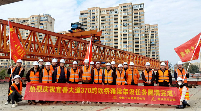 本站消息 12月15日上午11:33,隨著最后一片鐵路跨40米箱梁精準(zhǔn)落位,標(biāo)志著由中鐵十五局集團(tuán)二公司承建的宜春大道370跨鐵橋箱梁架設(shè)提前完成,為順利完成該橋年底通車奠定了基礎(chǔ)。