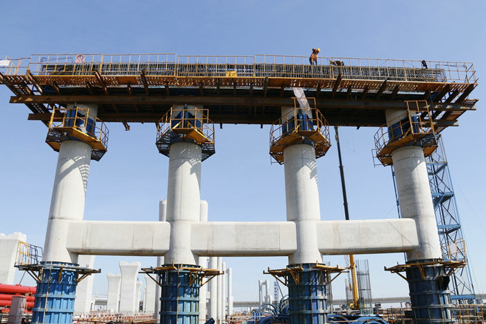 濱?;ネ?5座蓋梁順利完工,將為架梁掃除了重要障礙。