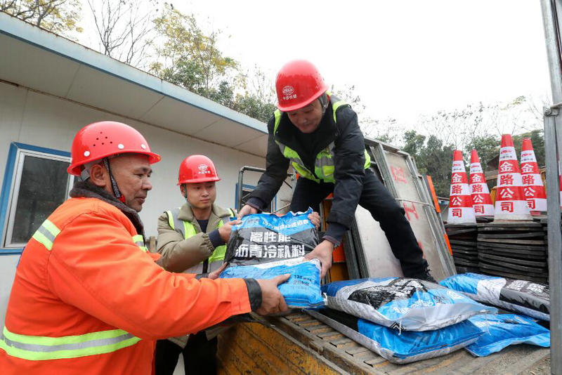 目前正值春運(yùn),為確保道路暢通,金路公司還準(zhǔn)備充足的快速搶修修補(bǔ)劑和冷補(bǔ)料。養(yǎng)護(hù)人員使用該修補(bǔ)劑修補(bǔ)橋梁伸縮縫,只需約6個(gè)小時(shí)就能達(dá)到通車條件,而傳統(tǒng)的需要約4天。冷補(bǔ)料用于修補(bǔ)路面坑槽,可以實(shí)現(xiàn)破損道路隨時(shí)搶修,修補(bǔ)完就能通行。而傳統(tǒng)的拌合站熱補(bǔ)料,至少兩個(gè)小時(shí)才能通行;增加道路搶修備用人員,確保事故發(fā)生后,他們可以第一時(shí)間上路協(xié)調(diào)交巡警參與應(yīng)急搶險(xiǎn)救援。