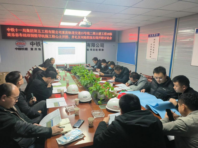 2月13日下午,中鐵建重慶軌道交通15號線二期土建工程總承包部18標項目部組織建設(shè)單位、監(jiān)理單位、勘察單位、設(shè)計單位、第三方監(jiān)控量測單位、施工監(jiān)測單位和施工單位召開歡樂谷車站雙側(cè)壁導坑施工核心土開挖方案討論會,經(jīng)過各方論證,認為該方案切實可行順利通過了論證。