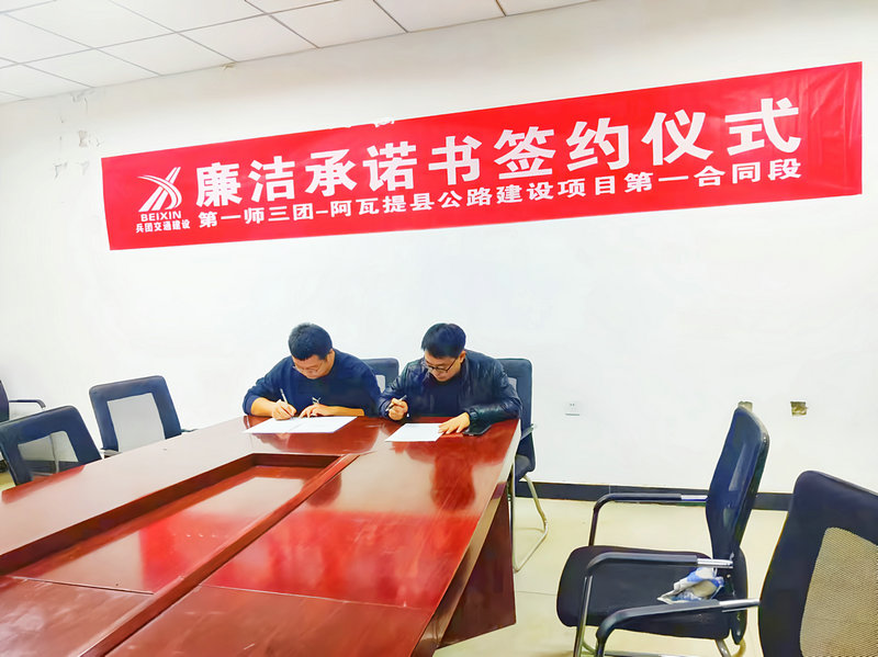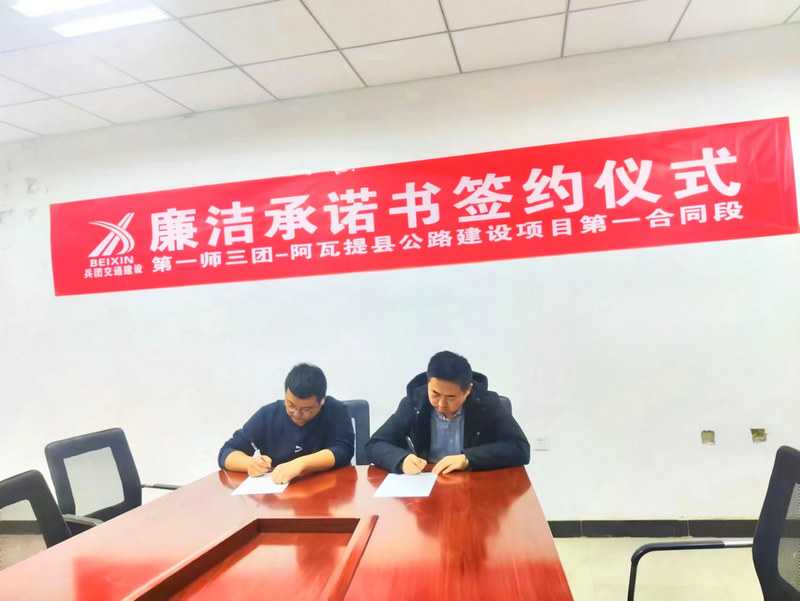 阿拉爾訊(通訊員 吳玉梅)為持續(xù)深化黨風(fēng)廉政建設(shè),不斷強(qiáng)化干部職工的紀(jì)律規(guī)矩意識(shí),創(chuàng)造清正廉潔的良好氛圍,筑牢思想防線,近日,兵團(tuán)交建公司第一師三團(tuán)-阿瓦提建設(shè)項(xiàng)目第一合同段組織開展廉潔從業(yè)承諾書簽約大會(huì)。