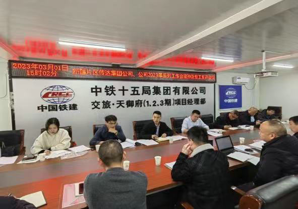 近日,中鐵十五局二公司新疆片區(qū)項目召開傳達集團公司、公司2023年系列工作會精神暨復工復產(chǎn)工作會議,會議在天御府項目會議室舉行,公司一級經(jīng)營經(jīng)理、新疆片區(qū)項目經(jīng)理柴桂林主持。新疆片區(qū)業(yè)務領導、各項目主管領導參加會議。