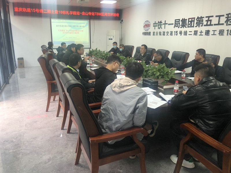 3月26日下午,中鐵建重慶軌道交通15號線二期土建工程總承包部18標(biāo)項目部組織重慶市質(zhì)量監(jiān)督總站、建設(shè)單位、勘察單位、設(shè)計單位、監(jiān)理單位、第三方監(jiān)控量測單位、質(zhì)量檢測單位、第三方測量單位、施工監(jiān)測單位和總承包單位召開禮學(xué)路站~金山寺站TBM區(qū)間右線百環(huán)驗收會議,結(jié)合驗收小組現(xiàn)場踏勘、施工單位和監(jiān)理單位相關(guān)資料、手續(xù)核查及各單位的驗收意見,重慶市質(zhì)量監(jiān)督總站宣布禮學(xué)路站~金山寺站TBM區(qū)間右線百環(huán)首件驗收通過,并準(zhǔn)予在15號線二期全線推廣實施。