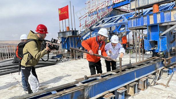 3月28日,寧夏廣播電視臺(tái)公共頻道《今日寧夏》欄目組蒞臨中鐵二十一局銀昆高速公路LJ12-2標(biāo)任灣茹河特大橋的現(xiàn)場進(jìn)行采訪和直播。