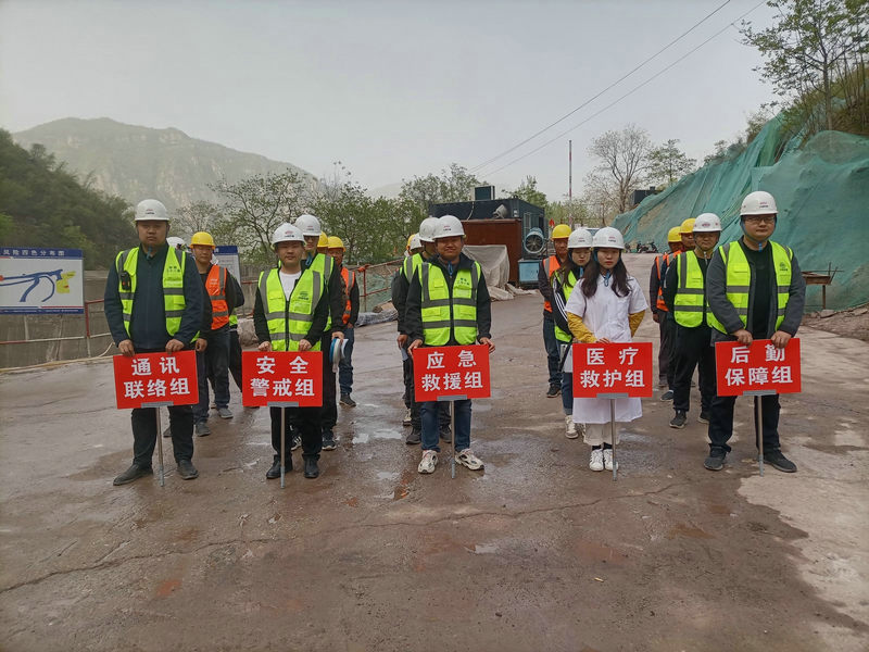 此次演練項目部成立了應急演練領導小組、應急指揮機構和應急演練專業(yè)小組,演練設通訊聯(lián)絡組、安全警戒組、應急救援組、醫(yī)療救護組、后勤保障組五個工作小組,分別模擬“現(xiàn)場作業(yè)人員隨意丟棄未徹底熄滅的煙頭導致周邊山體著火、汛期強降雨雨水漫過泄洪溝流入隧洞洞口導致雨水倒灌隧洞風險”情景,進行了實地實戰(zhàn)應急演練。在應急演練過程中,應急小組反應敏捷、行動迅速、協(xié)調(diào)一致,迅速完成了應急響應、安全疏散、應急搶險救援等工作。