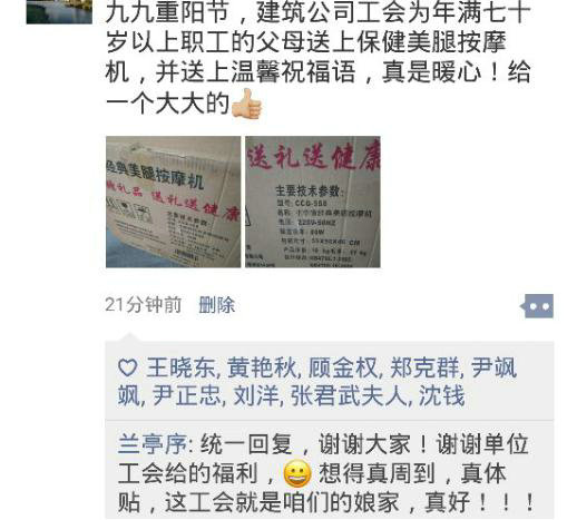 “感謝公司這么貼心的關(guān)愛,在這么一個特殊的日子里替我們給父母送上一份孝心,真是給了我們一個不小的驚喜,感謝父母恩情、感謝公司祝福”。職工們紛紛通過各種方式曬出了自己的心情。