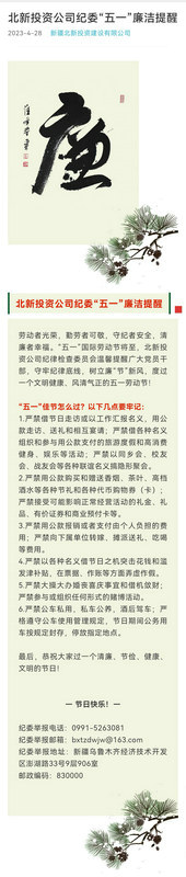—— 北新投資公司紀(jì)委“五一”廉潔提醒