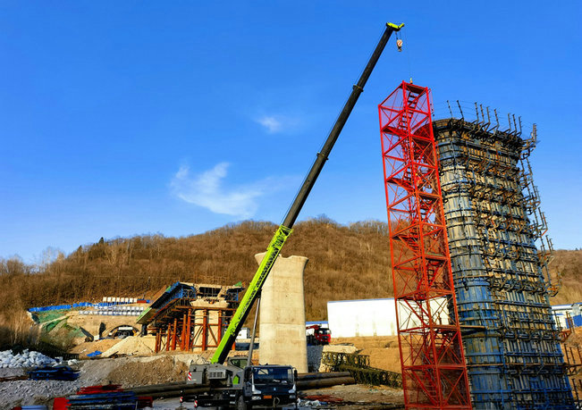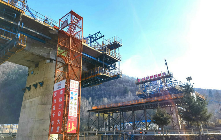 當(dāng)天下午,筆者一行翻山越嶺驅(qū)車(chē)100多公里來(lái)到了沈白高鐵吉林省撫松縣施工地段??缭綔啺阻F路、X096公路、湯河,穿過(guò)雙河電站蓄水庫(kù)區(qū)的湯河1、2、3號(hào)大橋施工現(xiàn)場(chǎng)映入眼簾。筆者看到,經(jīng)過(guò)20多天的營(yíng)業(yè)線封鎖施工,跨越渾白鐵路的三座大橋正在進(jìn)行緊張的移動(dòng)模架、掛籃 等施工作業(yè)。其中,湯河1號(hào)和2號(hào)大橋跨渾白鐵路營(yíng)業(yè)線鋼構(gòu)防護(hù)棚建設(shè)已經(jīng)進(jìn)入了收尾階段。他們克服地處既有鐵路高邊坡、緊鄰湯河、安全風(fēng)險(xiǎn)高等不利因素,制定了詳細(xì)的施工組織方案和應(yīng)急預(yù)案。調(diào)集了精兵強(qiáng)將30余人,并進(jìn)行了營(yíng)業(yè)線施工安全知識(shí)的培訓(xùn)和關(guān)鍵工序的模擬演練,責(zé)任落實(shí)到崗到人,全力以赴搶進(jìn)度。“施工過(guò)程中,我們嚴(yán)格執(zhí)行標(biāo)準(zhǔn)化作業(yè)不走樣,對(duì)鄰近線路作業(yè)的砼泵車(chē)、汽車(chē)吊等機(jī)械一機(jī)一人防護(hù),施工現(xiàn)場(chǎng)進(jìn)行了“硬隔離”,筑起了安全屏障。目前兩座跨線鋼構(gòu)防護(hù)棚基本完成,為五月上旬橋梁跨線部分的掛籃懸臂澆筑段施工贏得了寶貴時(shí)間”蓬頭垢面一臉疲憊的項(xiàng)目副經(jīng)理兼分部經(jīng)理郭曉斌欣慰地說(shuō)。