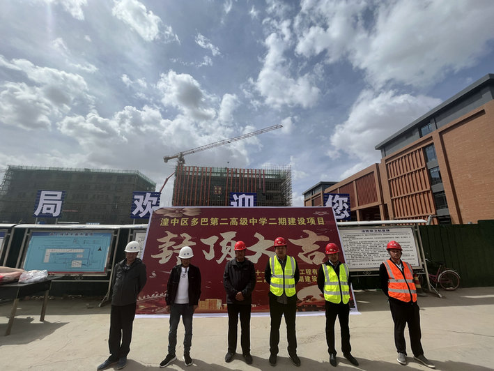 5月1日,伴隨著最后一方混凝土的澆筑完成,在甲方、監(jiān)理及項目領導的見證下,由中鐵二十一局四公司承建的多巴第二高級中學二期建設項目2、3、9#樓主體結構順利封頂。