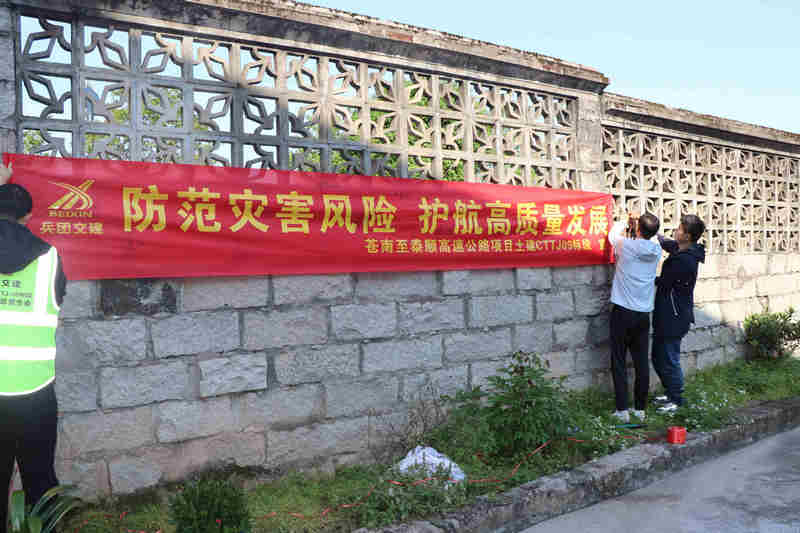 “我們地處浙江南部,受季風(fēng)影響強(qiáng)烈,洪澇、臺(tái)風(fēng)、雷電、強(qiáng)降雨、洪澇、滑坡、泥石流等災(zāi)害均可能發(fā)生,且發(fā)生的頻率比較高……我們應(yīng)當(dāng)知曉身邊自然災(zāi)害并掌握避險(xiǎn)技能,保證自身和身邊人的安全。”宣傳周首日,項(xiàng)目安環(huán)部緊緊圍繞宣傳周主題召開動(dòng)員部署會(huì),組織全體職工進(jìn)行宣誓和簽名,并在項(xiàng)目駐地周邊懸掛宣傳橫幅,張貼宣傳海報(bào)、發(fā)放宣傳單等,將防災(zāi)減災(zāi)知識(shí)傳達(dá)給每個(gè)從業(yè)人員,切實(shí)保障活動(dòng)注重效果、不走過場,確保工作取得實(shí)效。