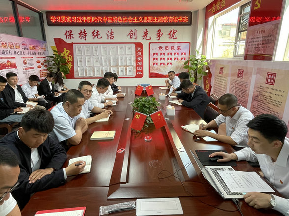 5月12 日,中鐵二十一局臨沂東部商城配套服務(wù)區(qū)項目舉辦學(xué)習(xí)貫徹習(xí)近平新時代中國特色社會主義思想主題教育讀書班,項目全體黨員參加。