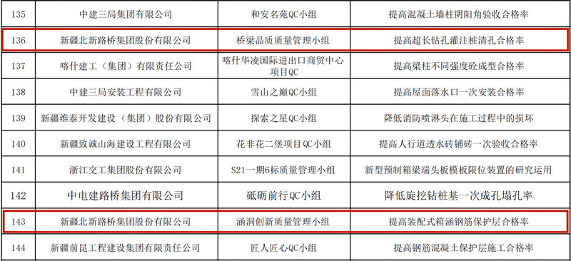 宿州訊(通訊員 孫夢(mèng)凱)近日,從新疆維吾爾自治區(qū)建筑業(yè)協(xié)會(huì)傳來(lái)捷報(bào),由北新路橋集團(tuán)安徽宿固公司申報(bào)的2項(xiàng)QC成果獲優(yōu)異成績(jī),均獲得Ⅱ類成果獎(jiǎng)項(xiàng),充分體現(xiàn)了該公司較強(qiáng)的技術(shù)攻關(guān)和扎實(shí)的質(zhì)量控制能力。