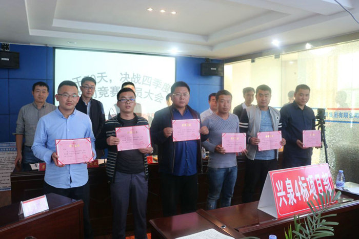 會上,賀迎賓首先通報了“大干30天 決戰(zhàn)三季度”施工生產(chǎn)完成及考核兌現(xiàn)情況,為兩家優(yōu)勝勞 務(wù)隊、優(yōu)勝架子隊及10名先進(jìn)個人進(jìn)行表彰頒獎。各優(yōu)勝隊伍代表作了的表態(tài)發(fā)言。