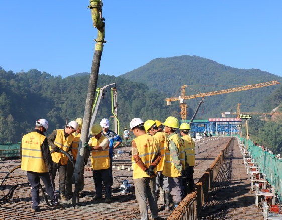 10月20日13時25分,經(jīng)過近30小時的連續(xù)奮戰(zhàn),玉(溪)磨(憨)鐵路磨黑四線大橋4x32m道岔連續(xù)梁順利澆筑完成,標志著該橋又一重難點被成功攻克。磨黑四線大橋是玉磨鐵路全線率先完成道岔連續(xù)梁施工的首座橋梁。
