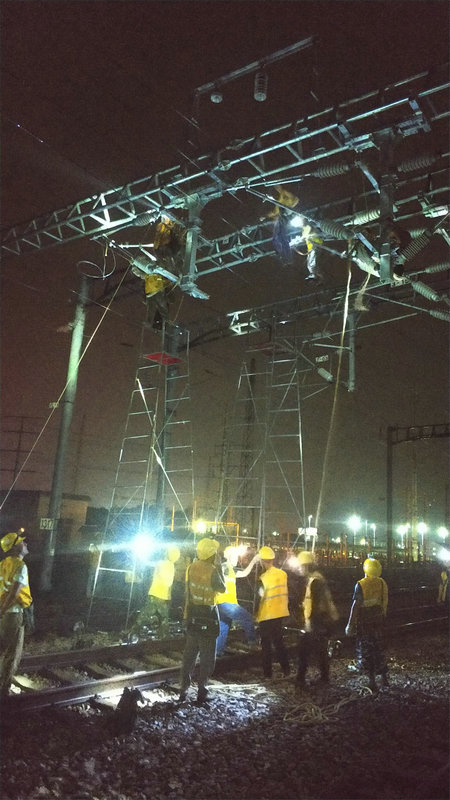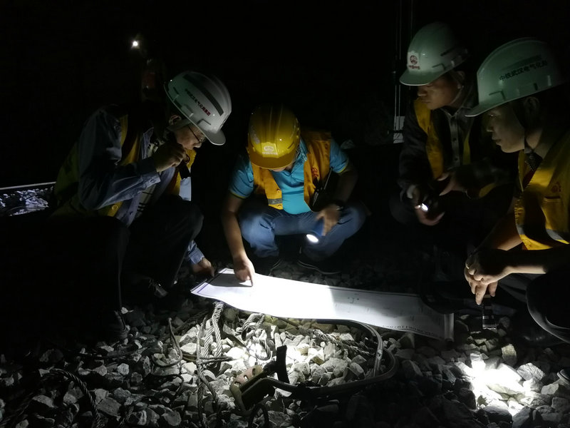 2018年10月16日夜間是梅汕項(xiàng)目部的第一次二級施工,一聲聲此起彼伏的鞭炮聲,拉開了夜晚的施工序幕。施工現(xiàn)場人員較多,大燈照亮了整個施工現(xiàn)場,六局在改造施工軌道,我們在安裝設(shè)備,雖然人數(shù)很多,工作卻井然有序,為了營造兩局同時施工的施工環(huán)境,雙方領(lǐng)導(dǎo)在密切的溝通下,開展了現(xiàn)場施工。