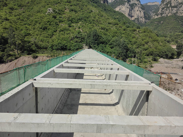 飛躍渡槽拆除重建工程是全線的控制性節(jié)點(diǎn)工程,截止目前,槽身防碳化、防滲處理等附屬工程已完成60%。自5月1日開(kāi)工建設(shè)以來(lái),項(xiàng)目部迅速掀起“爭(zhēng)開(kāi)通、保通水”大干90天勞動(dòng)競(jìng)賽活動(dòng),形成了大干快上的施工熱潮。面對(duì)工期緊、任務(wù)重、施工難度大、安全風(fēng)險(xiǎn)高等困難,項(xiàng)目部精心組織、周密部署,千方百計(jì)搶工期、保節(jié)點(diǎn),全體職工迎難而上、攻堅(jiān)克難、銳意進(jìn)取,保質(zhì)保量完成了節(jié)點(diǎn)目標(biāo)。