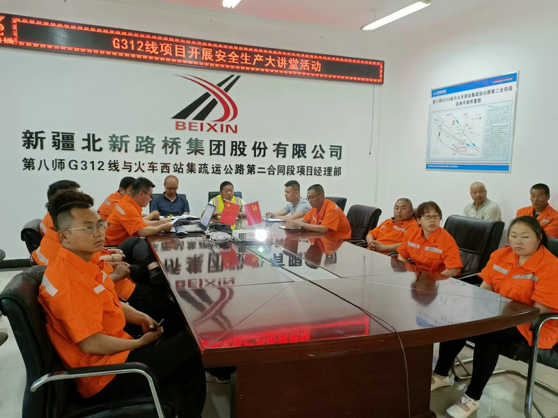 下圖為:新疆北新順通路橋公司G312線項(xiàng)目部開展安全生產(chǎn)大講堂活動(dòng)