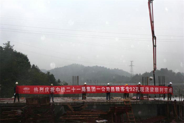 10月19日,中鐵二十一局集團(tuán)一公司承建昌贛客專磨刀1號(hào)大橋2-3號(hào)墩右站臺(tái)梁澆筑完成,標(biāo)志著該大橋順利完成。至此,公司昌贛客專項(xiàng)目部管段內(nèi)92孔現(xiàn)澆梁全部完成。