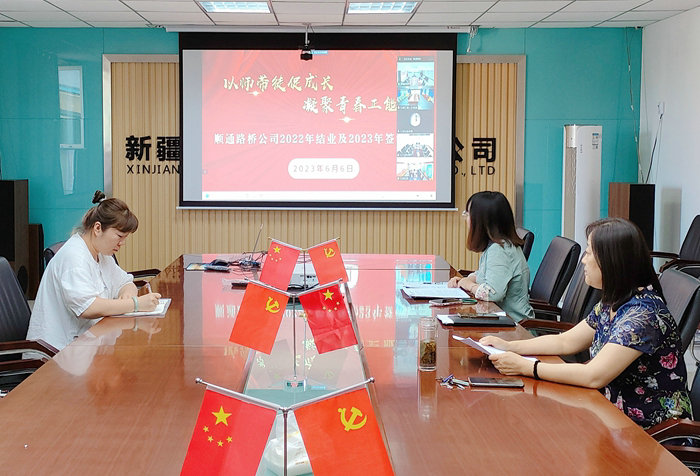 新疆石河子訊(通訊員 劉嘉俊)6月8日,順通路橋公司在總部以視頻會議的方式舉行了公司“導(dǎo)師帶徒”2022年度結(jié)業(yè)及2023年度簽約活動,公司及基層項目管理人員共計39人參加。