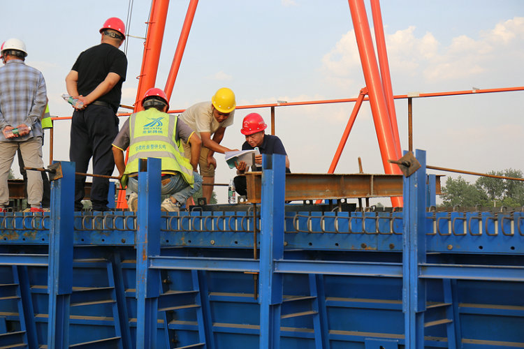 為確保首片預(yù)制箱梁順利澆筑成功,項(xiàng)目部從原材料考察、模板加工選用及澆筑養(yǎng)護(hù)控制等方面入手,深入研究、反復(fù)比選,確定了預(yù)制箱梁施工方案。施工前,項(xiàng)目部堅(jiān)持“方案先行、過(guò)程管控”的原則,積極召開(kāi)專題會(huì),對(duì)施工班組進(jìn)行了分工序技術(shù)交底及安全技術(shù)交底,對(duì)原材料檢驗(yàn)、鋼筋綁扎吊裝、模板拼裝拆除、混凝土振搗等作了詳細(xì)講解和分工安排。施工過(guò)程中,作業(yè)人員規(guī)范操作、密切配合,技術(shù)人員動(dòng)態(tài)跟蹤、實(shí)時(shí)控制,監(jiān)理人員全程旁站、精心指導(dǎo),確保了澆筑順利完成。