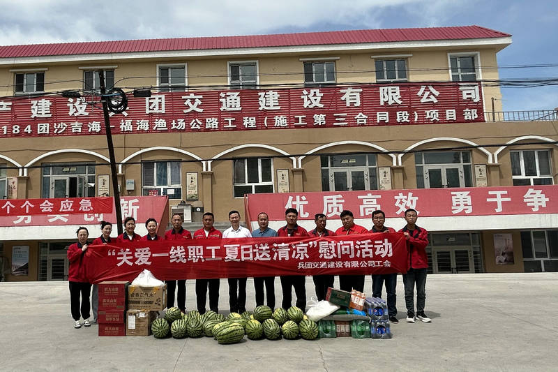 福海訊(通訊員 馬冬玲)激情飛揚(yáng)紅六月,致敬最美勞動(dòng)者。為傳遞公司黨委以及工會(huì)對(duì)一線職工的關(guān)心關(guān)愛,6月14日上午,兵團(tuán)交建黨委副書記、紀(jì)委書記、工會(huì)主席李軍赴國(guó)道576第十師184團(tuán)沙吉海-福海漁場(chǎng)公路工程項(xiàng)目開展“關(guān)愛一線職工 夏日送清涼”慰問活動(dòng)。