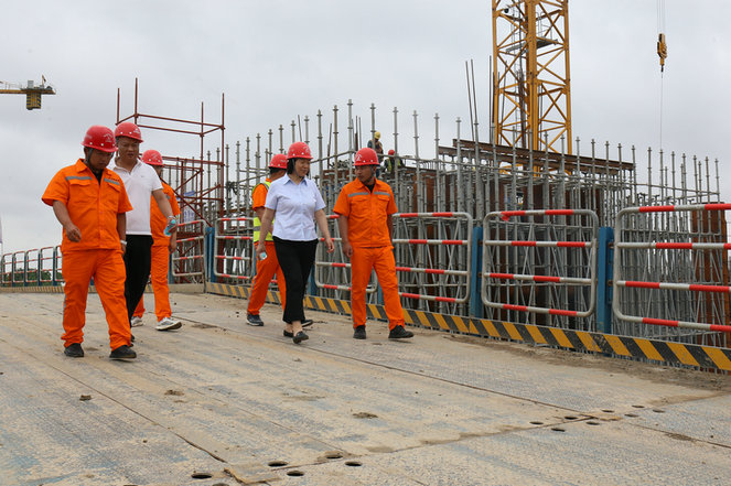 隨后,楊偉娜深入施工一線詳細(xì)了解項目施工進(jìn)度,認(rèn)真聽取項目負(fù)責(zé)人關(guān)于施工安全生產(chǎn)管理相關(guān)工作情況的匯報,并強(qiáng)調(diào)項目在搶抓工期、大干快上的同時,要高度重視職工健康情況,持續(xù)加強(qiáng)施工現(xiàn)場安全生產(chǎn)管理,加強(qiáng)防暑宣傳教育,切實將高溫施工各項防暑措施落實到位,全力保障項目施工安全。