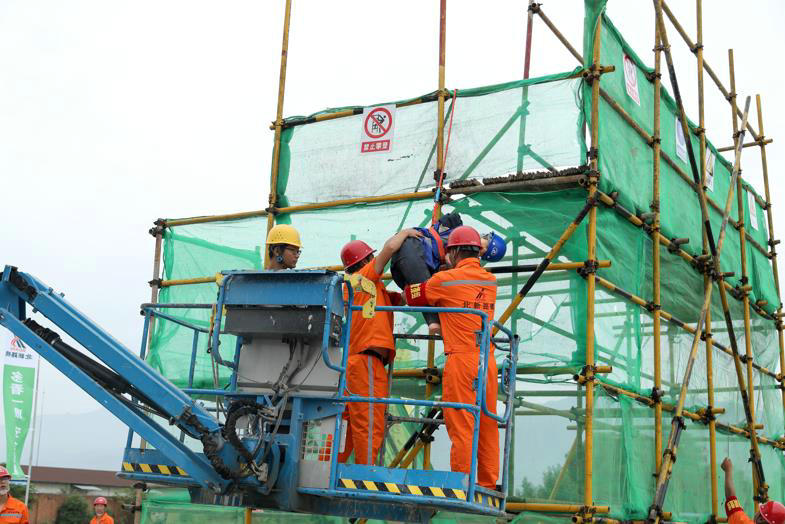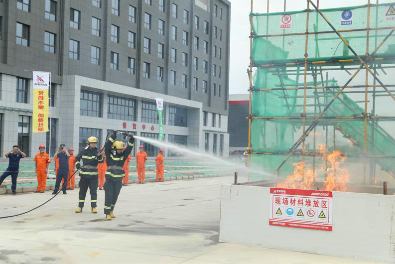 應急演練圍繞高處墜落事故和火災事故兩個方面進行。該項目模擬電焊作業(yè)人員從高處墜落,以及因電焊作業(yè)時焊渣掉落至作業(yè)平臺下方材料堆放區(qū)引發(fā)火災的場景。在事故發(fā)生后的第一時間,項目部即啟動相應應急預案,各救援小組分工明確,迅速行動,按照預案流程在極短時間內完成了各項預警、疏散、滅火、救護及處置總結各項內容。演練現(xiàn)場指揮得當、協(xié)調有序,展現(xiàn)了事故上報、預案啟動、現(xiàn)場搶險、聯(lián)動救援、安全警戒、事故調查等應急救援全流程,進一步提升了各部門快速聯(lián)動、應急救援處置的能力?,F(xiàn)場還結合項目建筑工程特點和施工實際,分別進行了醫(yī)療救護宣講和消防知識講解,具有較強的針對性和實用性,達到了檢驗預案、鍛煉隊伍的目的。