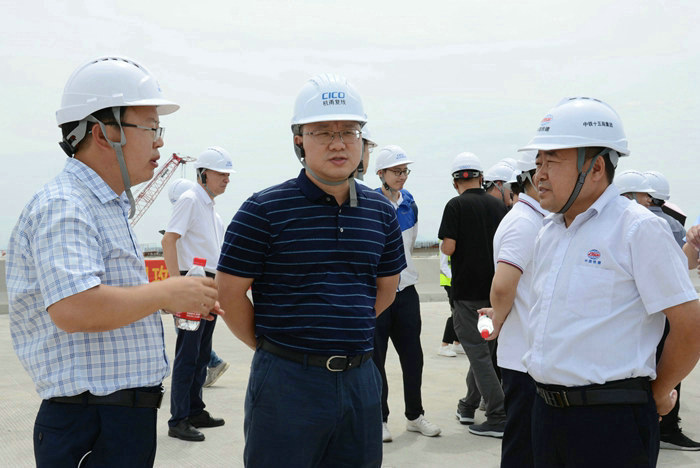 上午10點40分,由寧波市交通工程管理中心黨委書記、主任王迎春帶領(lǐng)的觀摩團來到濱?;ネê诵膮^(qū)域,首先聽取了業(yè)主現(xiàn)場負責人陳宜保就杭甬項目濱?;ネüこ谈艣r、規(guī)模、開竣工時間、工程進度等情況。公司副總經(jīng)理兼杭甬項目黨支部書記、項目負責人黃偉介紹了濱?;ネ犖榻ㄔO(shè)、物資設(shè)備管理、攻克施工難題、安全質(zhì)量、架梁推進、收尾現(xiàn)場管理等情況,并回答了寧波市交通局黨組副書記顧偉軍,浙江華展工程研究設(shè)計院有限公司黨委書記、總經(jīng)理何國平等領(lǐng)導的提問。市軌道交通集團有限公司副總工程師葉俊能說:“濱?;ネㄌ鸷沉?,這個亞洲最大的海上互通,施工單位能建成現(xiàn)在雄偉壯觀的模樣不容易,沒有科學的管理和精湛的技術(shù)是不行的。”寧波市研究生院副院長周嫻華動情地翹起大拇指說:“中鐵十五局這支隊伍是好樣的!”烈日下,許多人在濱?;ネㄖ骶€橋兩側(cè)依欄目不轉(zhuǎn)睛地觀看縱橫交錯的匝道橋,俯視凌空飛架金塘大橋的3座匝道橋,觀看高溫下堅守匝道橋鋪設(shè)鋼筋網(wǎng)、澆筑混凝土的員工。一些員工被太陽曬得黢黑的臉龐和用衣袖擦汗水的舉動深深地感動著觀摩人員。寧波市人大常委會城建環(huán)資工委副主任、二級巡視員梁成初叮囑黃偉:“工地干活太辛苦了,目前正值高溫天氣,要做好防暑降溫工作,員工的生命健康是第一位的。”